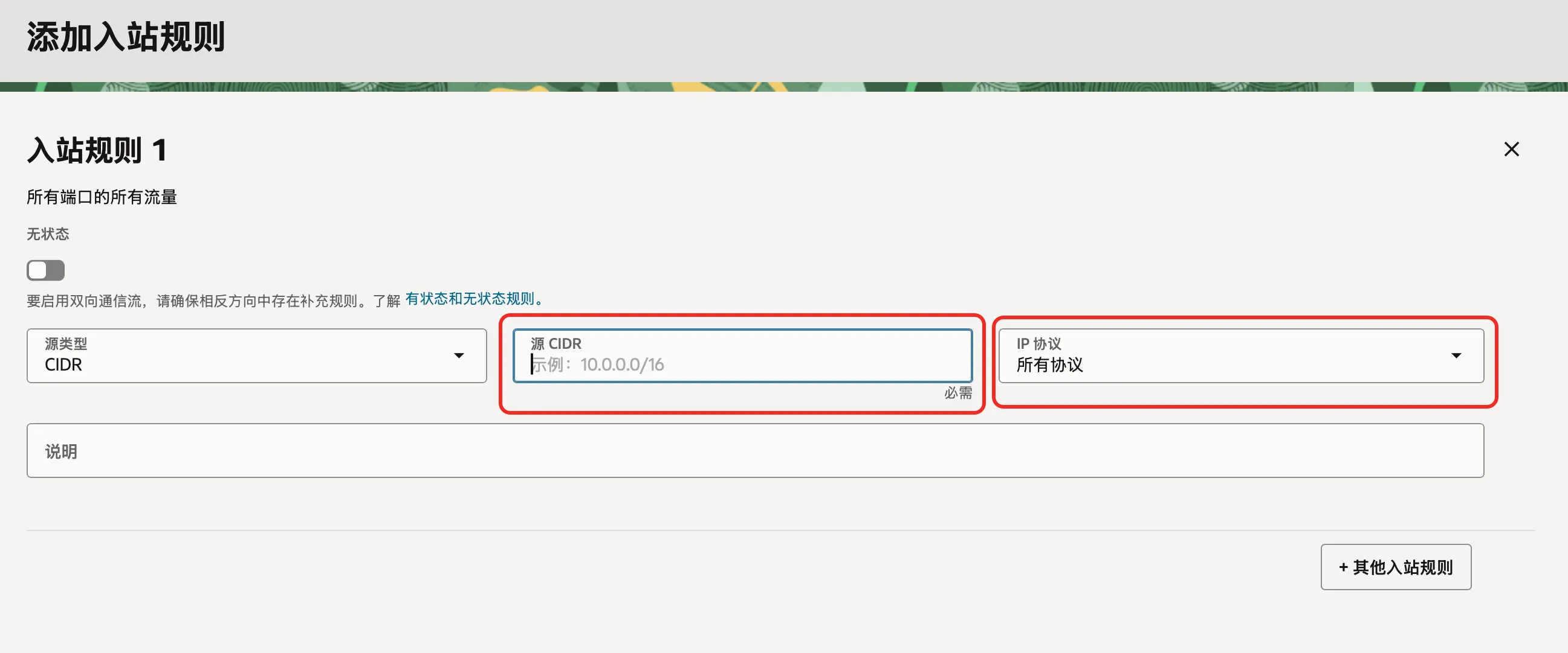 - 「IP 协议」选择「所有协议」。